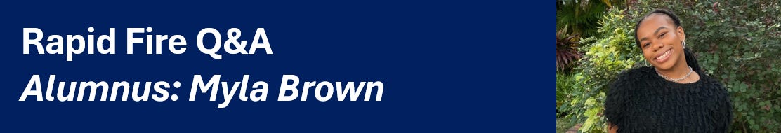 Rapid Fire Q&A (Alumnus: Myla Brown)