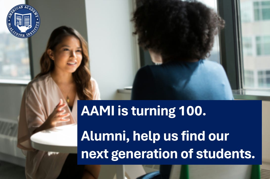 Advance the Mission is AAMI’s centennial giving campaign – a call to alumni, friends, and partners to help raise $100,000 as we move into our 100-year anniversary.